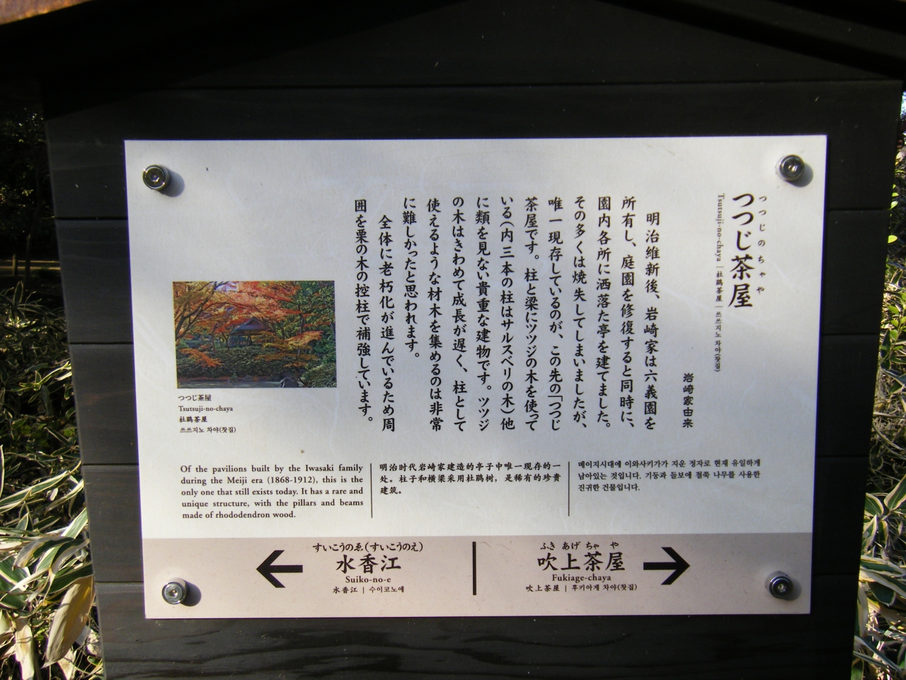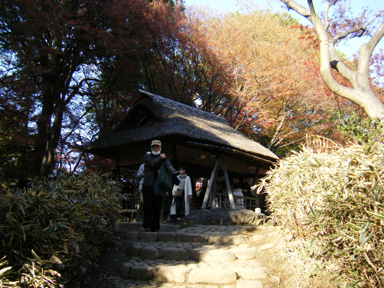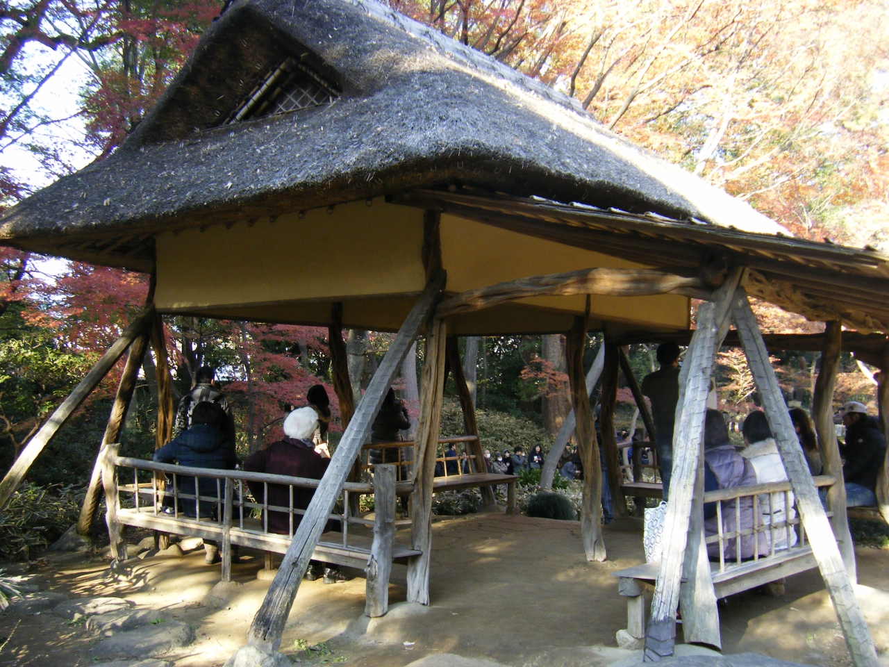 六義園の北側の高台にある茶屋です。六義園の中にはいくつか茶屋がありますが、こちらは飲食などは出来ません。屋根と椅子があるだけ、といった感じです。このあたりから眺める紅葉は素晴らしくて、多くの人が写真を撮ったり、紅葉を眺めたりして立ち止まっていました。眺めもいいので六義園の中を散策する際に、休憩したい場所の一つですね。