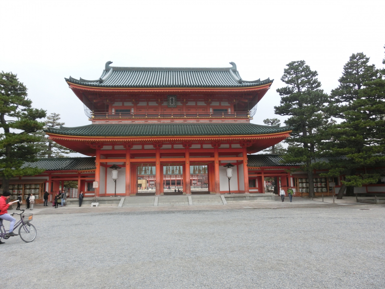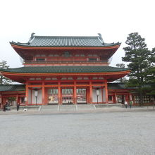 歴史的には取り立てて言うほどのことは内平安神宮だが、この門は平安京朝堂院の應天門を模した二層の楼門で、正面玄関にふさわしい重厚感がある。。