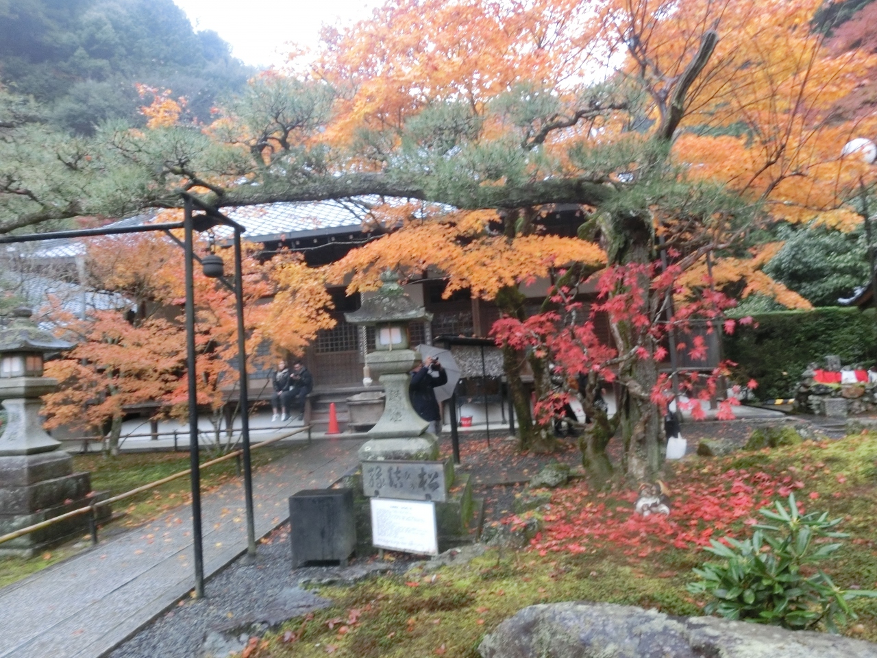 小雨が降るあいにくの日だったが、紅葉と松の対比が何よりの目の保養。