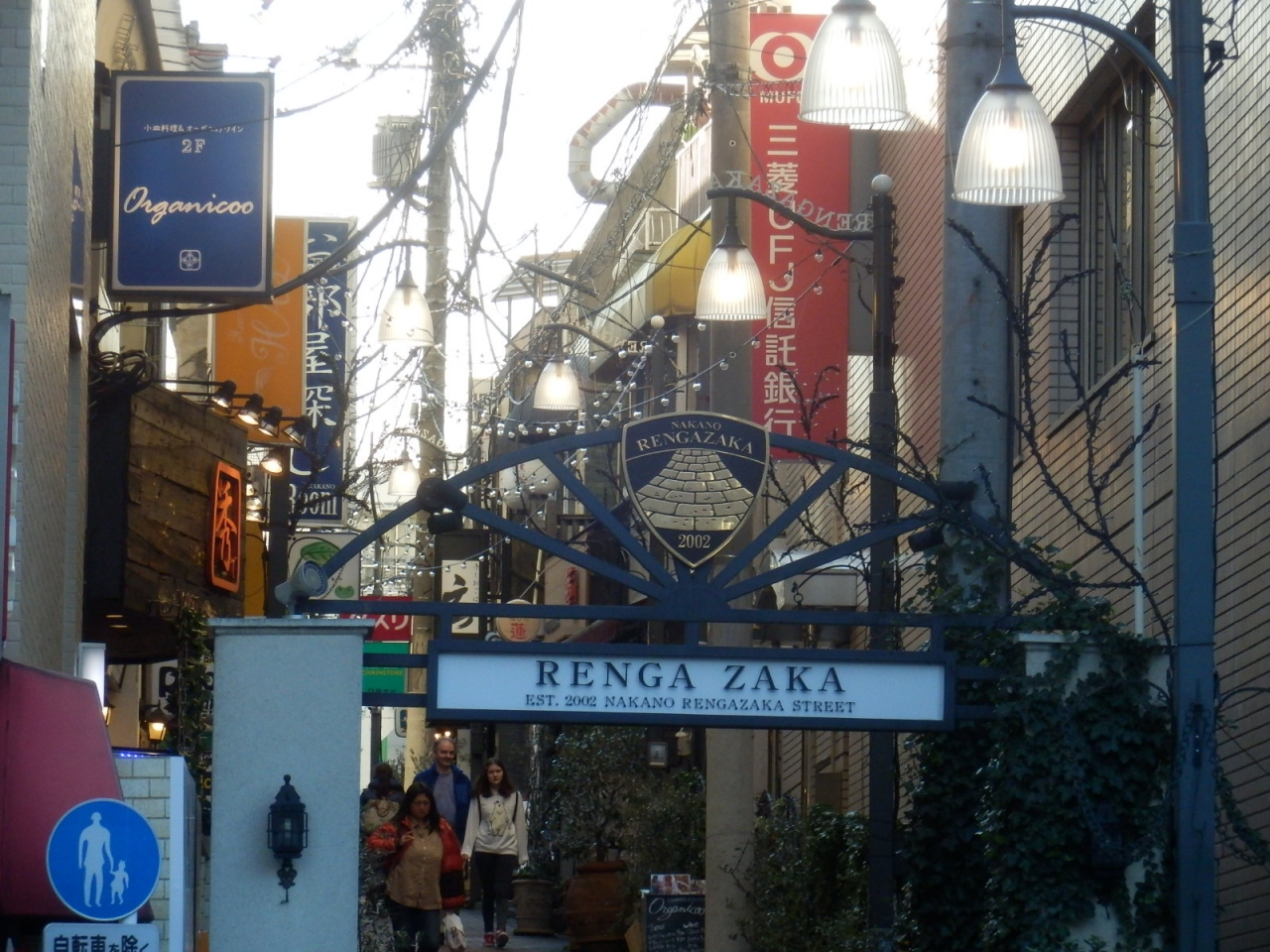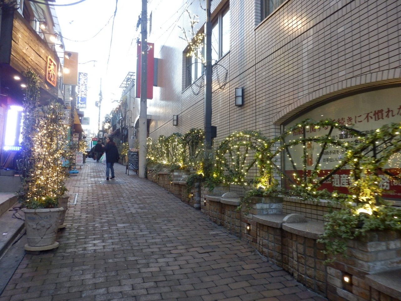 中野駅南口を出てすぐ、マルイの手前にある細い坂道です。レンガが敷き詰められた通りで、坂の入口部分にはレンガでベンチも造られてましたし、夜はライトアップされていてオシャレな雰囲気でした。細い坂道の両側に並ぶのはスペインバルなど、オシャレにお酒が飲めるお店が続いていました。