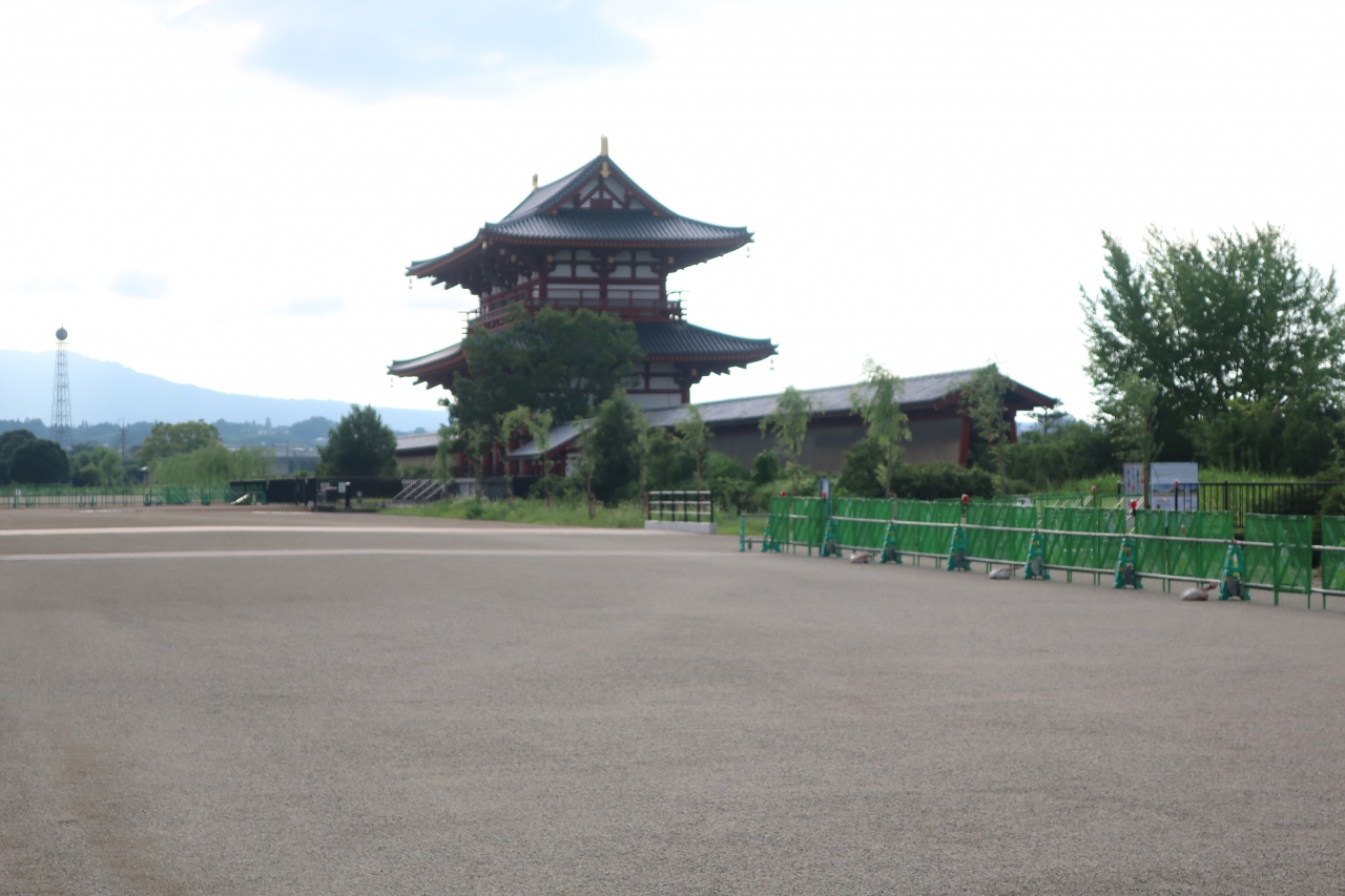 近鉄奈良線の大和西大寺駅と新大宮駅との間に広がる奈良時代 平城京の後です。以前から電車で通るたびに見える朱雀門が気になり行ってきました。行ってみると、ともかく広い草地の中に多くの礎石が残っています。そして、朱雀門は電車から見るよりも更に大きく見えました。現在、歴史公園に工事中で朱雀門を含め通れない場所があるので、少しがっかりしました。