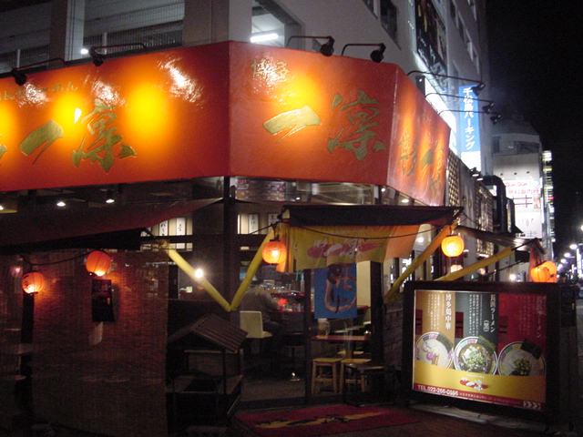 派手な外観で目立っているラーメン屋さん。仙台屈指の繁華街、国分町に位置しています。東北に来ながら博多ラーメンというところがユニークですが、長浜ラーメンはかなり本格的。焦がしニンニクを使ったマー油で、スープは黒いです。