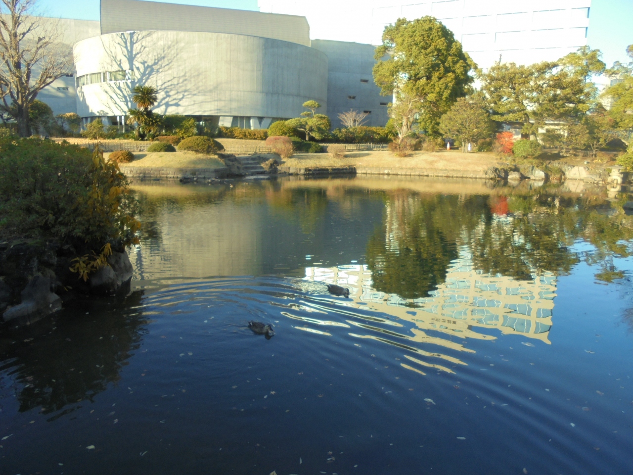 鴨が泳いでいて、みているだけで癒されました。