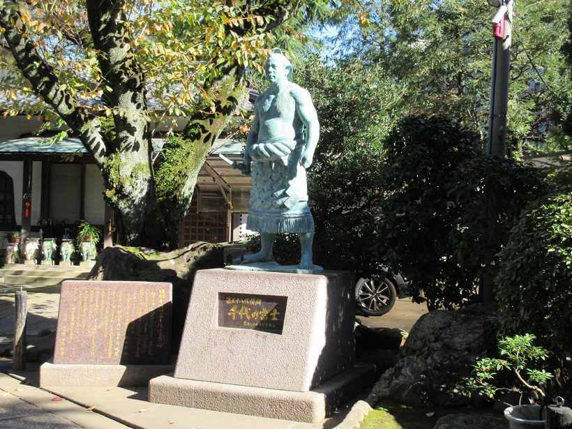 谷中の寺町を散策していた際、彼の菩提寺である玉林寺本堂のそばに千代の富士の像が建てられていました。昭和の世代にとっては懐かしい横綱で、大変な業績を残された方で国民栄誉賞も受賞されました。この像を見て在りし日の凛々しい姿を思い出しました。