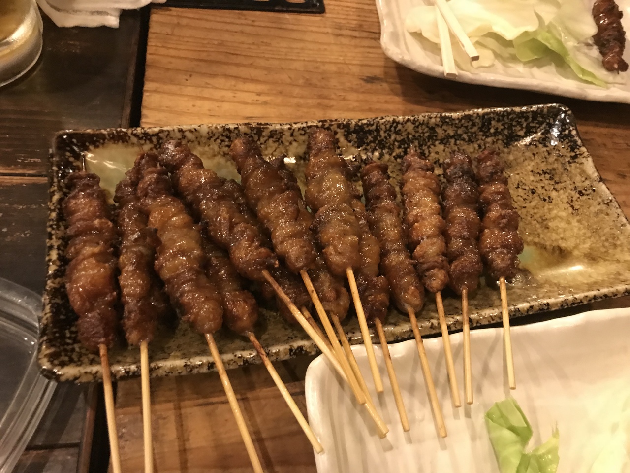 評判の高いかわ屋さんを訪問。焼き鳥を一揃え注文して食べる。人気のかわはどこにでもある味、そのほかの焼き物も大きさが小さく、抜群の味ではないので、値段とアジのバランスで評判がいい店かもしれない。店内も狭く落ち着くには向いていない店。