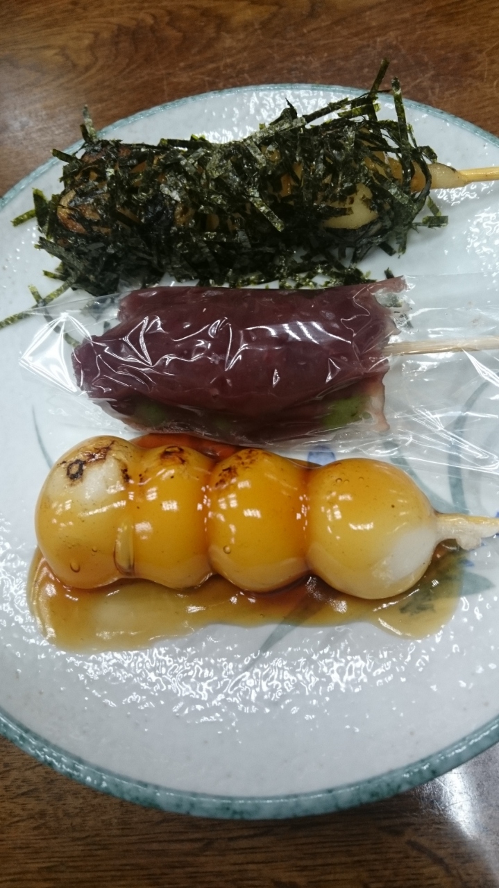 向かい合って2軒お店があり、広い方でお団子を食べながら休憩しました。