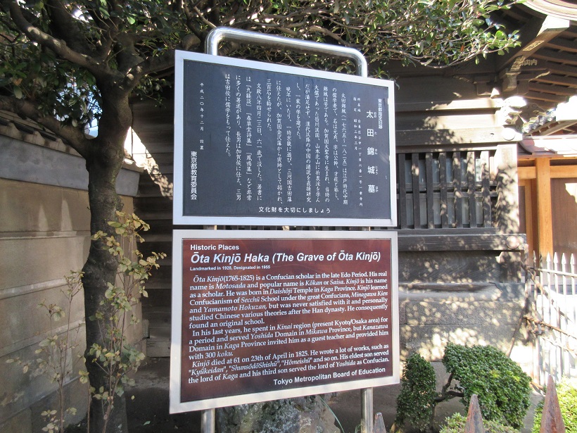 谷中散策で善光寺坂(言問通り)を西北方面に向かって上がり一乗寺というお寺の山門手前にありました。説明版が充実していて街歩きの際には非常に助かりますが、このお墓も同様で、太田錦城は江戸時代を生きた儒学者の一つであったとのこと。当時の人たちが何を考えながら生きていたか思いめぐらすきっかけになりました。