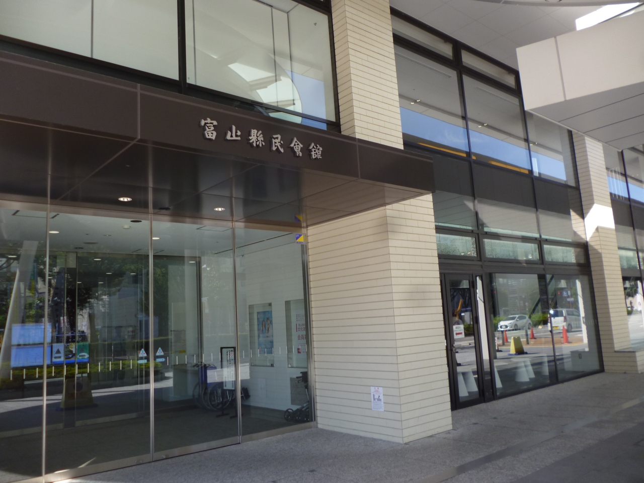 富山県庁と富山市役所の間にある県民会館。立派な建物で、1964年にできました。展示室や美術館、ギャラリー、劇場、茶室、邦舞室もある会館です。誰でも手軽に借りることができる施設で、いろんなイベントに使えます。そして、一番おすすめなのは、レストランです。富山の海の幸や牛肉などが懐石料理としていただけます。豪華な雰囲気のレストランでたいへん、優雅な時間を過ごせました。
