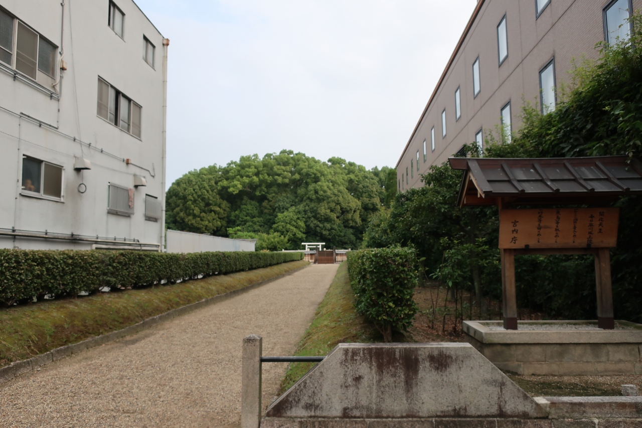 奈良 三条通り、ホテルフジタの左手に参道の様な道が奥に伸びている。その先に開化天皇陵がある。近寄って見ても、奥に大きな木が茂る御陵と、其の前に参拝所の鳥居が見えるだけです。しかし、街中にある小さな古墳は見たことがありましたが、こんな繁華街の中に、この様な大きな古墳、しかも天皇陵があるとは驚きでした。