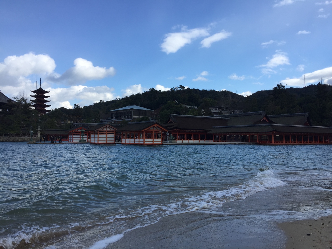 高い所に建っているので 宮島のいろいろな所から見えて いろいろな建物とコラボして 結構フォトジェニック。