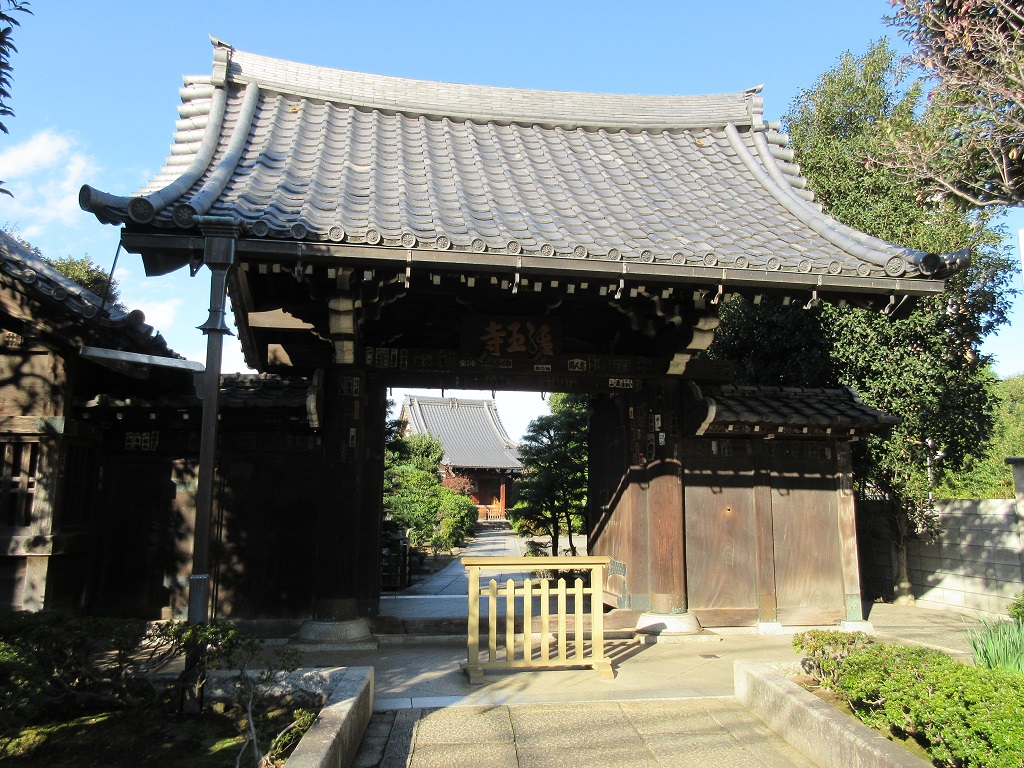 谷中銀座から日暮里駅西口方面に向かう途中、御殿坂の左手にあり訪れたお寺です。立派な山門を過ぎると参道があり、比較的新しく感じられる本堂が山門に平行ではなくバイアスに建てられていました。このお寺は旧幕府軍と明治新政府軍が戦った上野戦争の際に銃弾を撃ち込まれるなど歴史的な場所のようで、そうした情景を思い描きながら境内を散策しました。