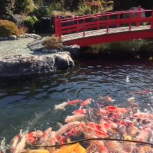 団体ツアーでお昼ご飯に立ち寄りました。広い食事スペースで、ガラスドアから庭園に出られます。庭園には赤い橋が架かっていて、池には大きな錦鯉がたくさん泳いでいて自動販売機で鯉の餌も売っていました。お土産物も果物やパン、タオルなど種類豊富でした。