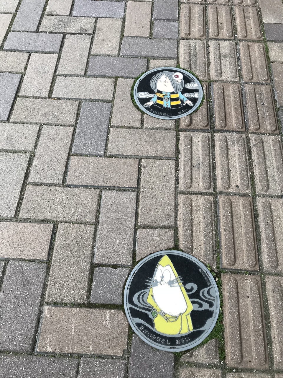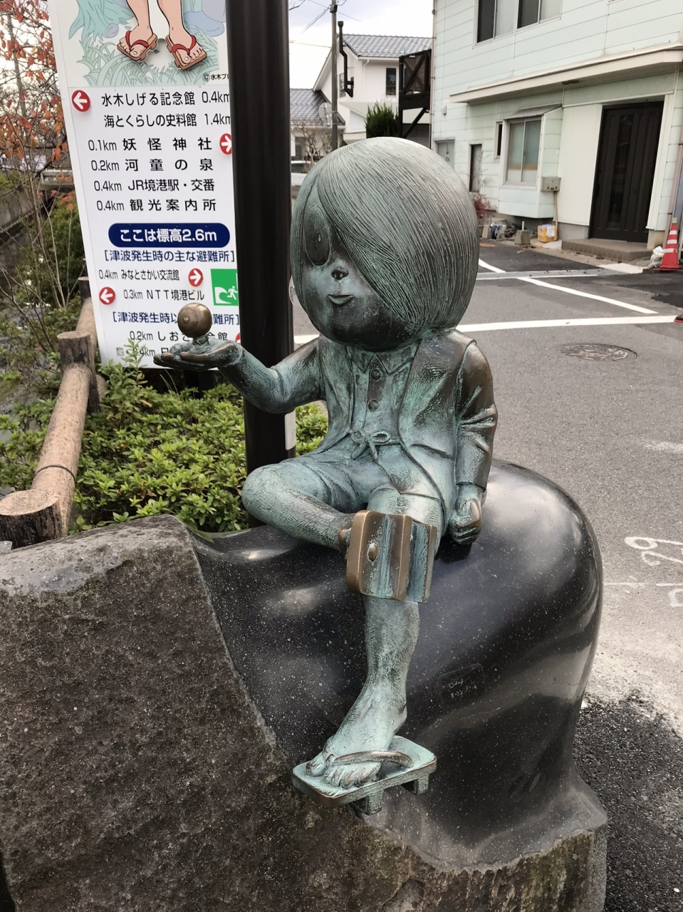 境港駅から鬼太郎記念館まで続く道沿いにある鬼太郎の登場人物の銅像などがいっぱい置かれている道です。ただ今は道路改修中でなどコーンなどが置かれてちょっと残念な気分でした。工事中は世界妖怪会議という場所に銅像が一部移動しているのでそちらも見た方がいいみたいです。