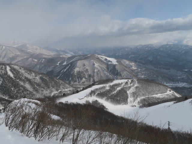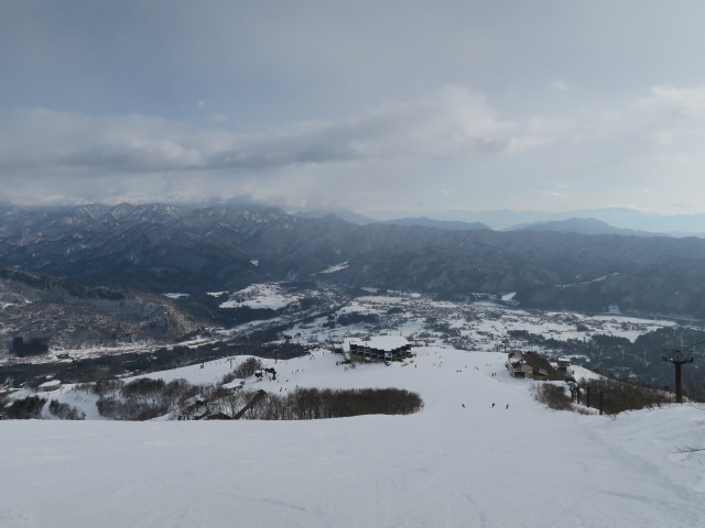咲花北尾根クワッドリフトで中腹まで登り、そこから伸びるスカイライン第2ペアリフト沿いのコースがパウダーゾーンになっていて、この時はちょっと硬い新雪だったものの、広く長いのでとても楽しむ事ができる。