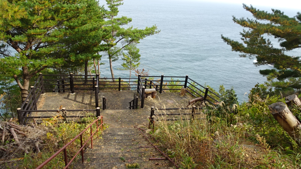国民宿舎黒崎荘の裏手にあるので目立ちませんが、とても眺めのいい展望台で、北山崎の断崖絶壁が一望できます。長い階段を下るので、帰りはきついですがそのつもりでどうぞ。駐車場は国民宿舎の広い駐車場に停めることができます。