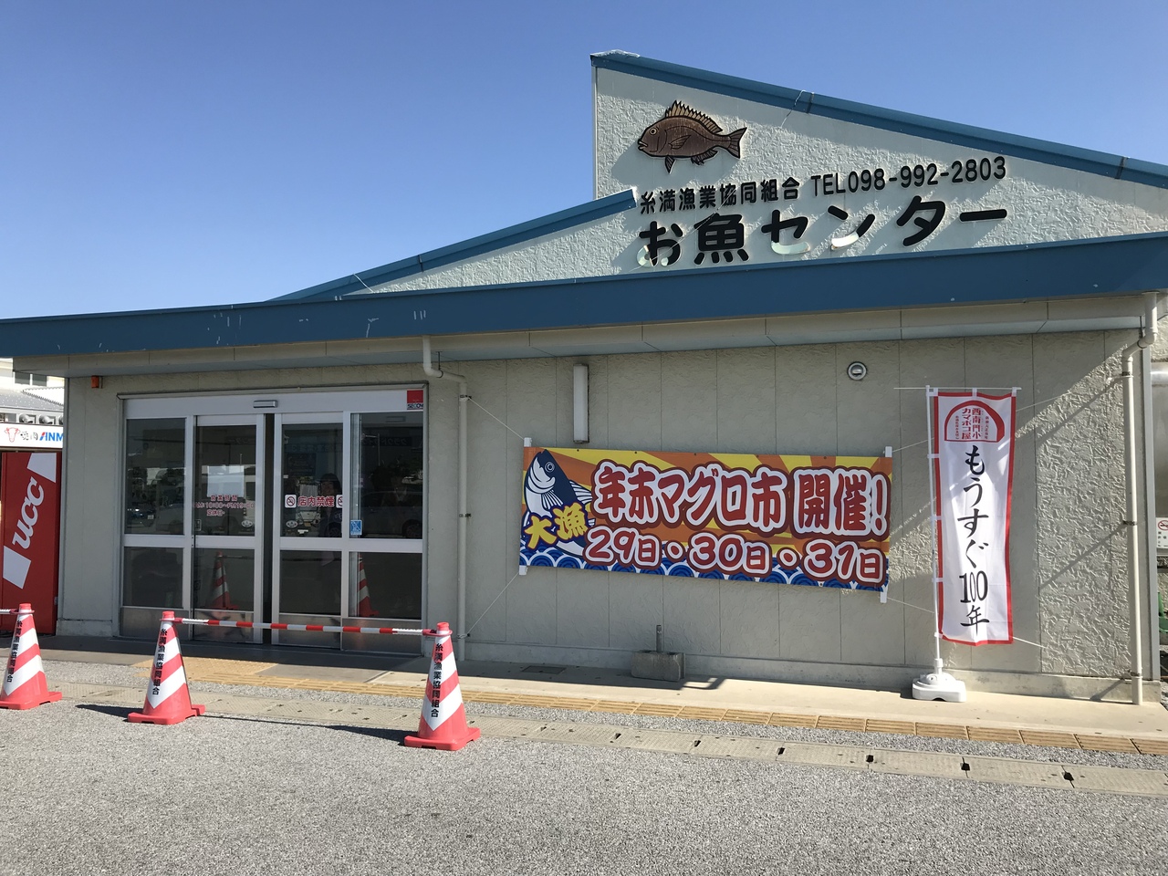 糸満道の駅内にある魚介類を扱うエリアです。無料駐車場あり。