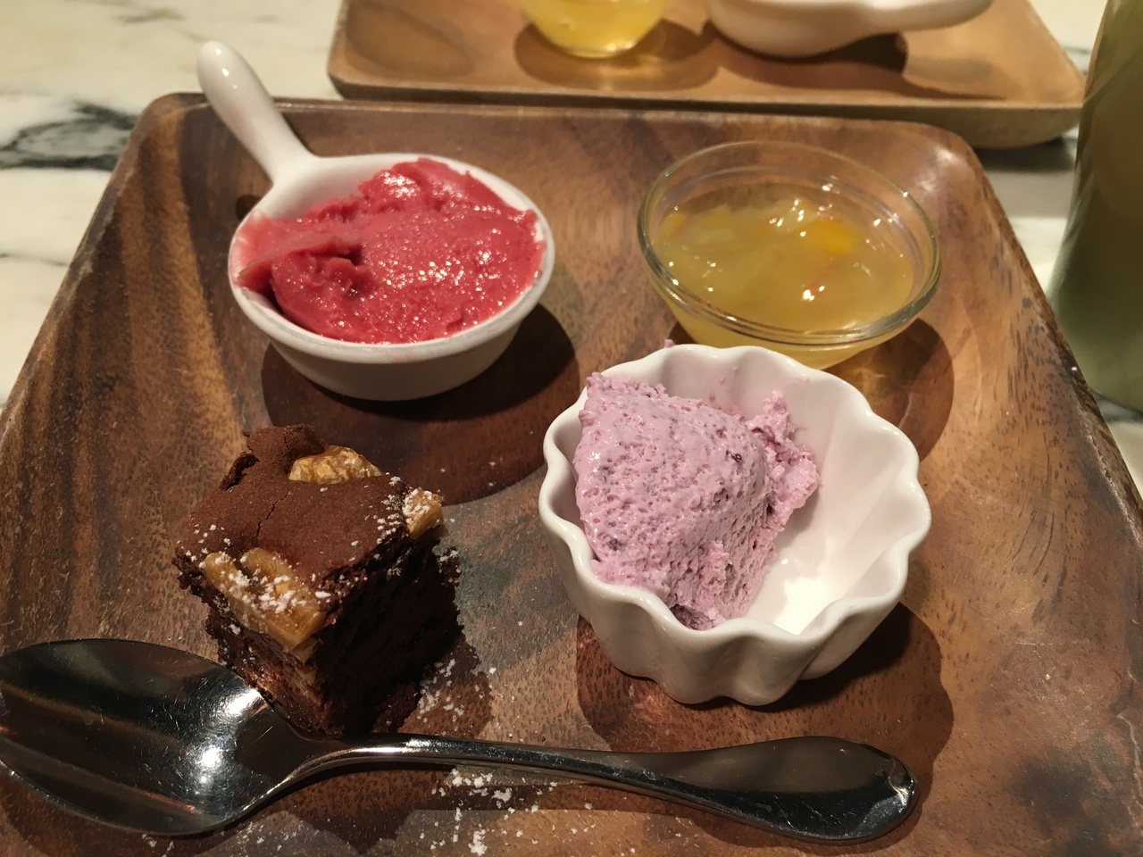 ビュッフェには生ハムやソーセージやスープやパンやピクルスや生野菜も有り豪華です。