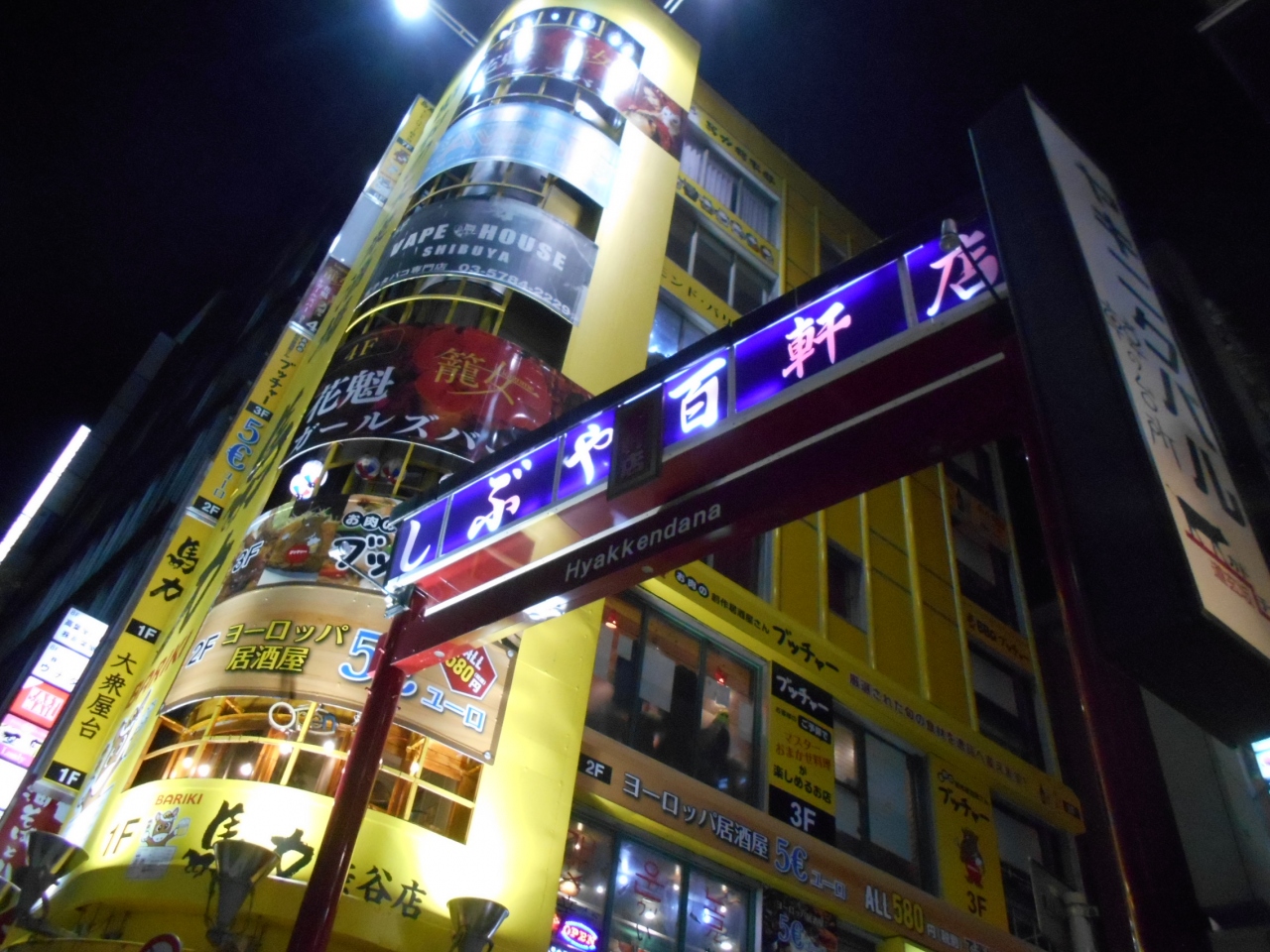 夜だとしぶや百軒店と書かれたゲートが目立っていますのですぐにわかります。
