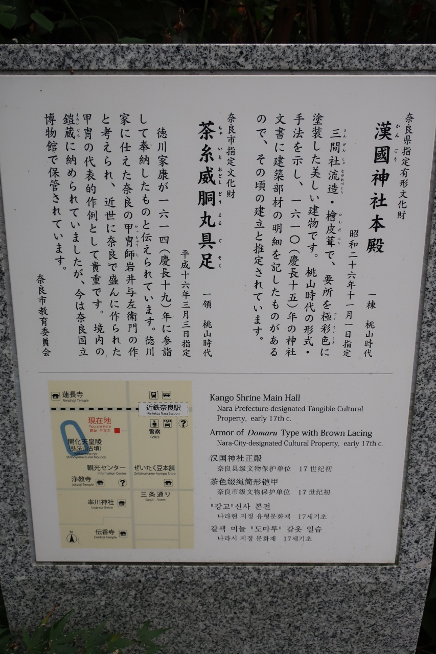 奈良のやすらぎの道から開化天皇陵側に入った先に漢國神社があります。やすらぎの道の横井赤い鳥居がありますが、神社はそこから更に奥に入った所にあります。何も知らずに行きましたが、推古天皇の勅命によって作られた以外と古い神社で、境内には饅頭の祖神を祀る林神社があるため、菓子業者の奉納が多いのが面白いです。