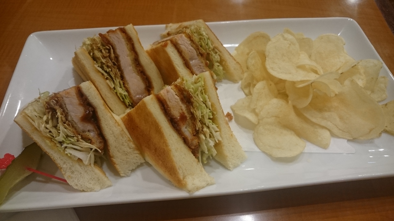 カツサンドを頂きましたが、かなりずっしりジューシーでした。