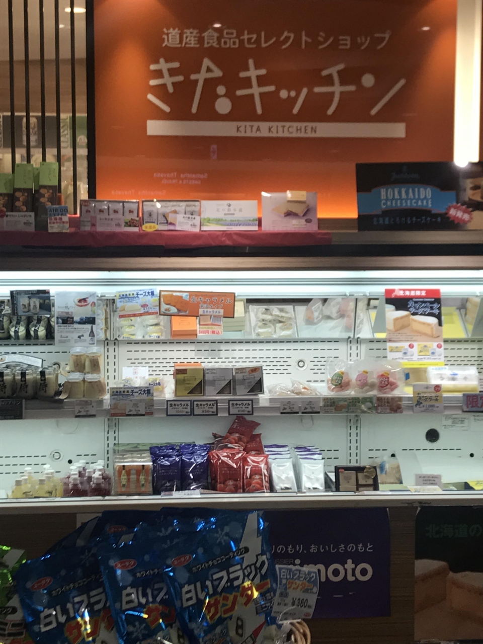 新千歳空港のショップの一つのきたキッチン。小樽のお菓子を探していたら、このお店にはあるかもと教えていただき、初めて寄りました。何回も新千歳空港に寄ってるのに気づきませんでした。どこもおなじような品揃えだと思って寄ってなかったのかも。ここは、このお店でしか見かけないものが多くあったので、また、寄りたいです。