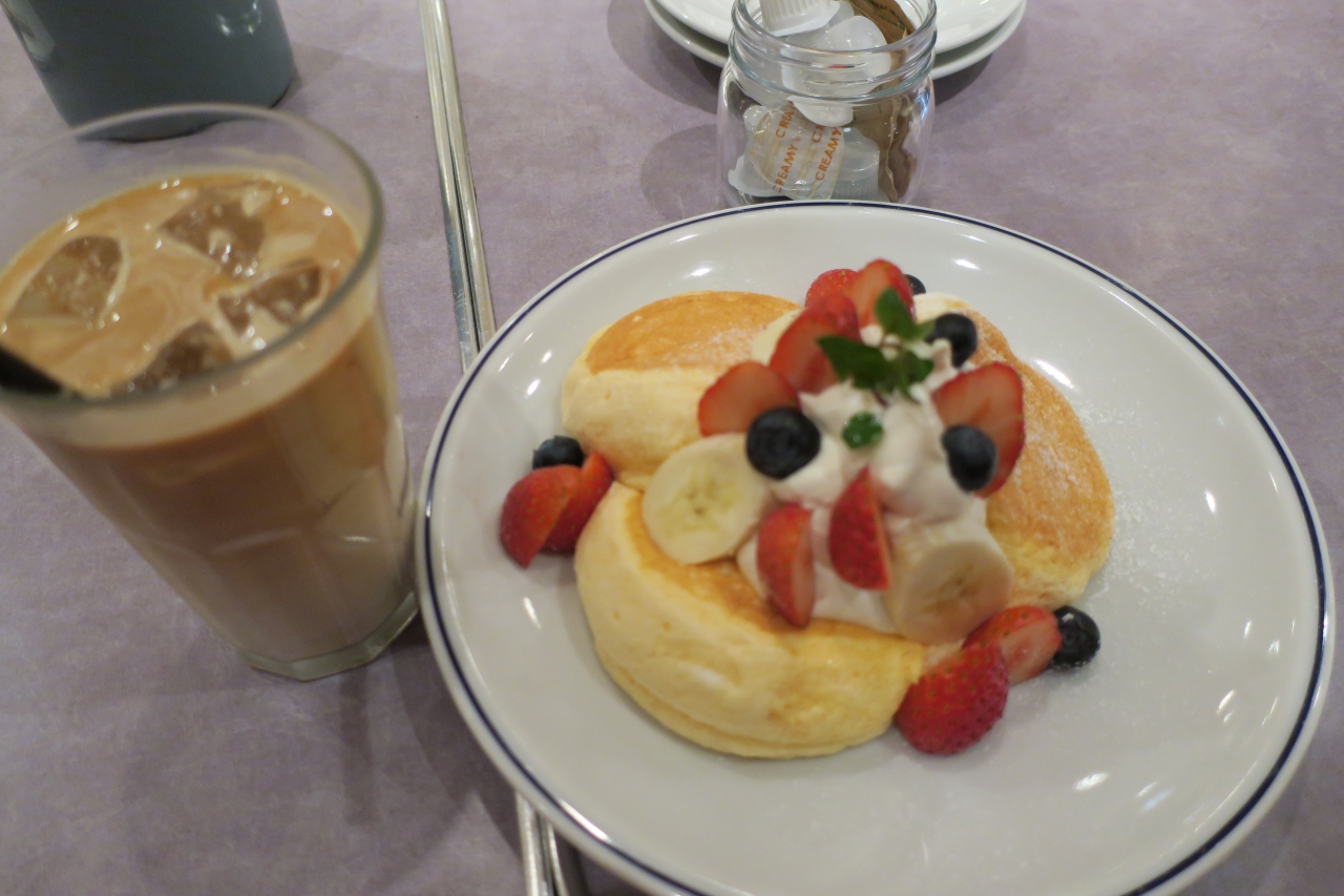 自由が丘でご飯を食べてデザートを食べようとこちらに寄りました。看板に乗っていたフワフワのパンケーキ美味しかった。フルーツがいっぱいのってボリュームもありました。明るいお店でオープンキッチンなのも良いです。