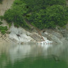 黒部湖のカンパ谷船着場から針ノ木谷までを30分ほどかけてまわる遊覧船です。立山連峰と後立山連峰に挟まれた黒部大谷を見るこの遊覧船、陸からではわからないところを見ることができます。黒部湖の平均標高1448メートルで、これは日本で一番高いところにある遊覧船です。ここまでどのように運んだのか、わかりませんが大変ですね。そんな心配もしながら遊覧船からの景色を満喫しました。