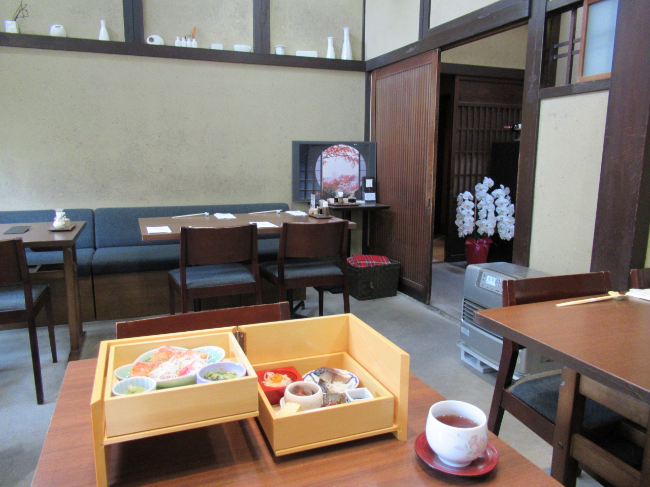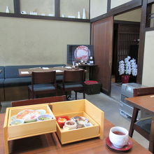 2段になっている箱膳や煮物、メインは勿論西京漬けの焼き物にちりめん山椒、デザートと続きます。