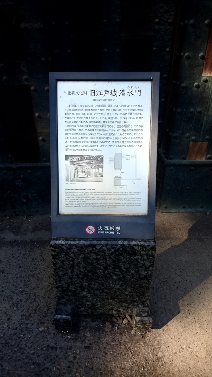北の丸公園を散策している途中で、北の丸の東に位置する清水門を訪れました。この門は1624年に浅野氏によって建てられた枡形門です。この辺りに清水寺があったことに由来する名前と言われており、9代将軍家重の時には次男重好をこの門内に住まわせて御三卿の一つである清水徳川家が創立されました。歴史を感じさせる門でした。