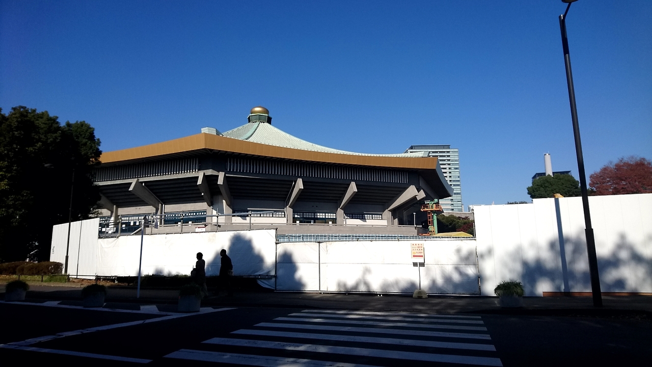 北の丸公園の北の端、田安門を入ったところに「たまねぎ」で有名な日本武道館がありました。外構の工事中で柵で覆われていましたが、屋根に乗っている「たまねぎ」はみることができました。日本の伝統的な武道を普及するための武道館は、北の丸公園の中でも特に目立っていました。