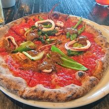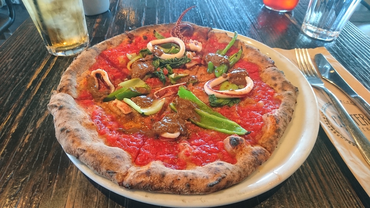 原宿駅徒歩10数分、明治通りにあるビル9Fに入っているピッツェリアです。ランチで利用しましたが、ピザがうまいと評判の店らしく混んでました。イカスミのピザがあったのでそれを頼みました。イカスミのほろ苦さが絡み合って絶品でした。