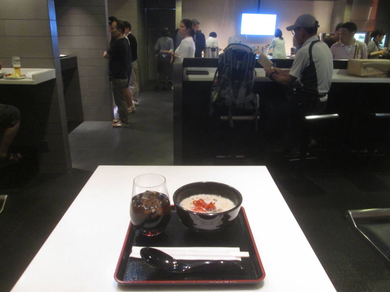 羽田空港国際線ANAラウンジで提供される麺メニューはハーフサイズぐらいでちょうど良いです。出汁が効いたうどんかそばを1杯、ANAラウンジの看板的メニューになったとんこつラーメンを1杯ペロリと食べることができました。