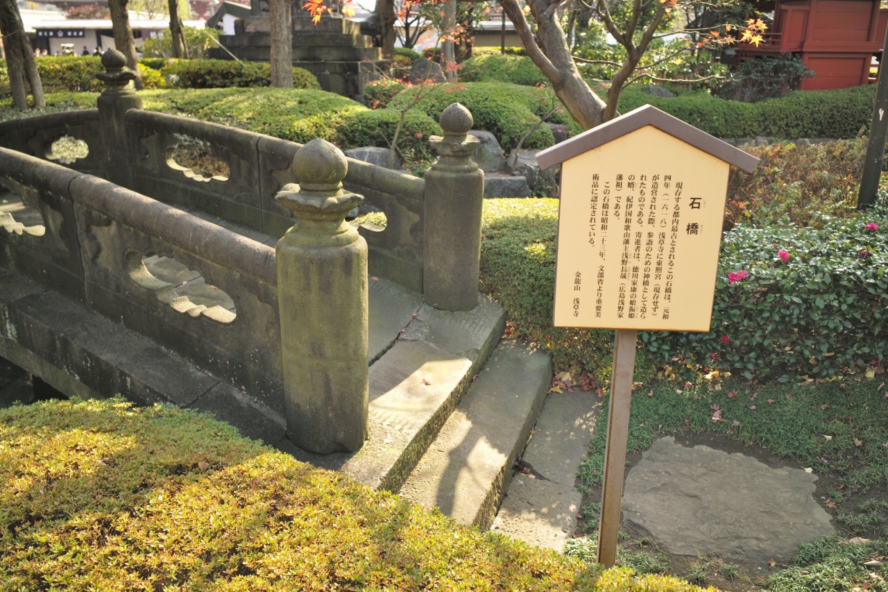 こちらはかつて浅草寺の境内にあった東照権現社の神橋で別名を「淡島の石橋」と呼ぶそうです。