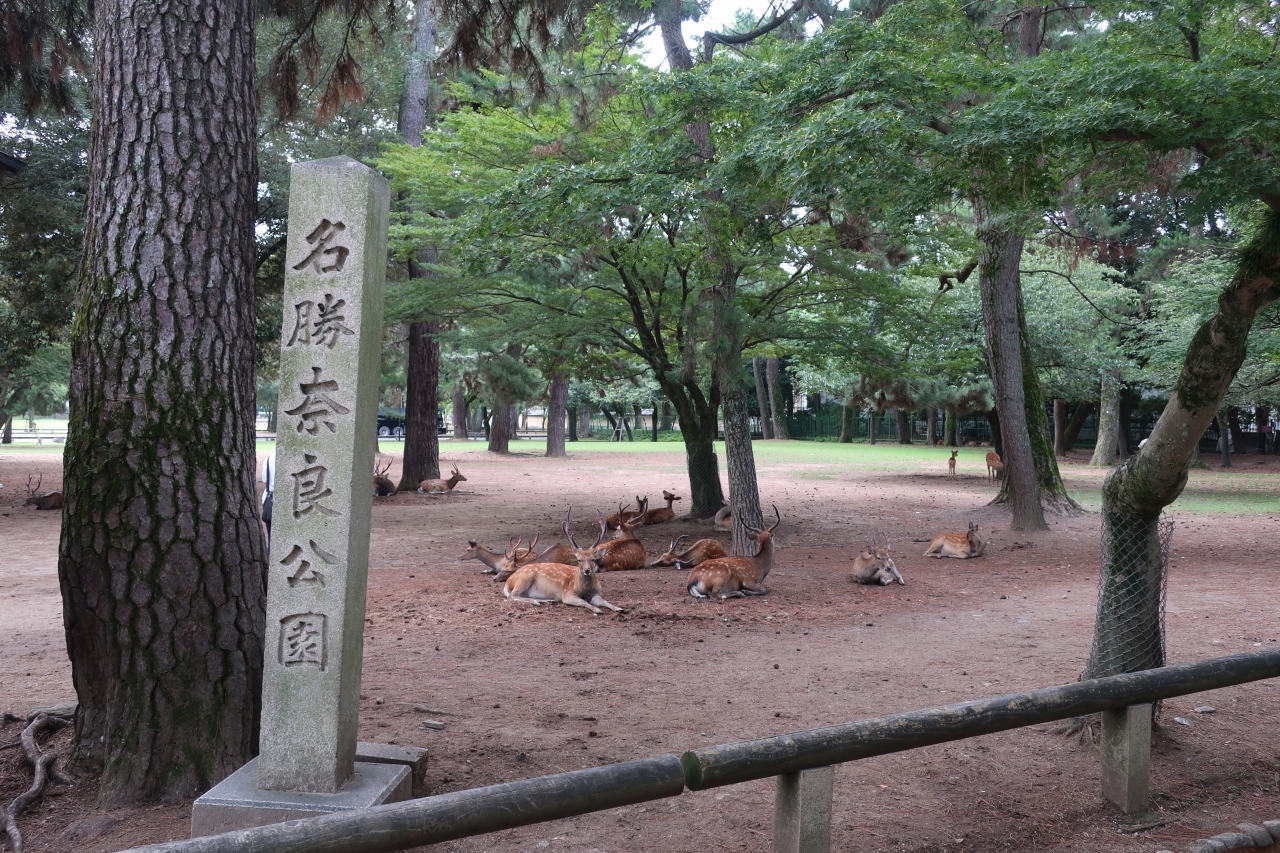 この公園には春日大社の神の使いである鹿が放し飼いにされており、餌を求めて近寄ってきます。そこで注意しないといけないのが鹿の糞。丸っこい鹿の糞が沢山落ちているので踏まないように注意が必要です。