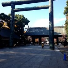 靖国神社の参道を進んでいくと青銅製の第二鳥居がありました。青銅製の鳥居というのも珍しいですが、こちらの鳥居は1887年に建てられたもので、青銅製の鳥居としては日本一の高さを誇ります。色のせいか、男らしさを感じる鳥居でした。