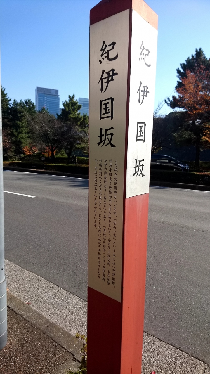 北の丸公園の南側、竹橋から国立公文書館の前あたりまでの緩やかな坂が紀伊国坂です。この近くに、かつて紀伊邸と尾張邸があったことに由来するそうです。緩やかな坂なので、それほどきつくはありませんが、距離があるので時間がかかります。