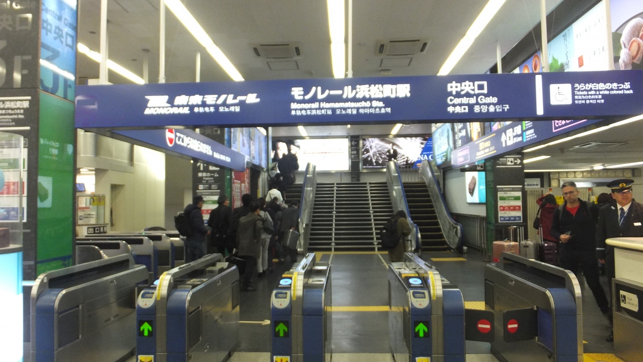 JR浜松町駅からの乗換えは簡単ですが、都営地下鉄大門駅からだと少し厄介です。エスカレータありますが、構造が昔のまんまですので、狭さを感じます、ホームも同様です。