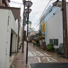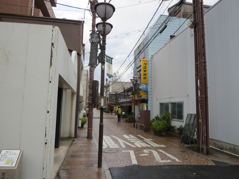 松江大橋の北詰の辺りから宍道湖大橋方面に向かう狭い通りでした。昔は高級な店が並んでいたのかなと思う雰囲気もありますが、今は飲食店、お菓子屋さんなどが少しあるくらいです。夕方のためか人通りもなく寂しい感じがしました。