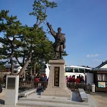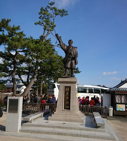 国宝松江城の天守に行くには大抵の方が通る大手門広場に、堀尾吉晴公の銅像がありました。松江城を築城した戦国大名だそうで、豊臣秀吉や徳川家康に仕えてたそうです。高さが約6mもある銅像は、天守閣に向かって凛々しい姿で立っていました。