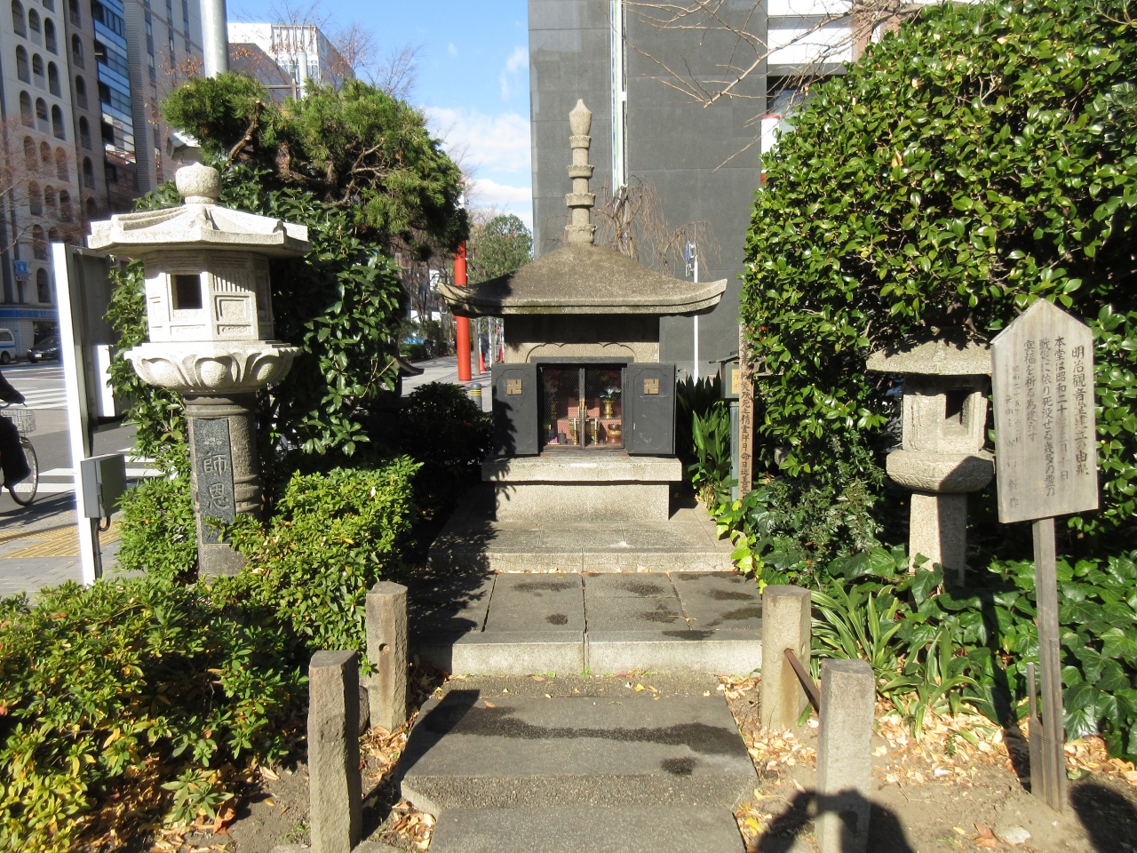 浜町公園前交差点にある浜町公園入口に石造りのお堂があります。戦災で亡くなった方たちの冥福を祈るために昭和25年に建立されました。木の立て看板に由来が記されています。燈籠があり、塔婆が立っていました。頑丈な石造りで、金属の厚い扉の内側に網の扉があり、観音像が祀られています。お参りできるように整理整頓されていて管理している方がいるのが分かります。平日保育園児たちが遊ぶ浜町公園入口に観音堂があることに大切な意味があるように感じました。