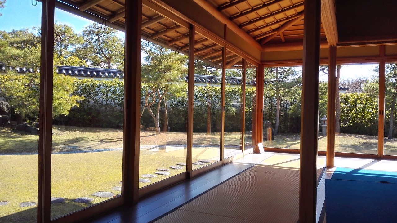 好古園の中にある抹茶をいただけるお店です。裏千家第15代家元千宗室氏の設計とのことですが、庭の景色がとても素晴らしくて本当にゆっくり落ち着いて抹茶をいただくことができます。
