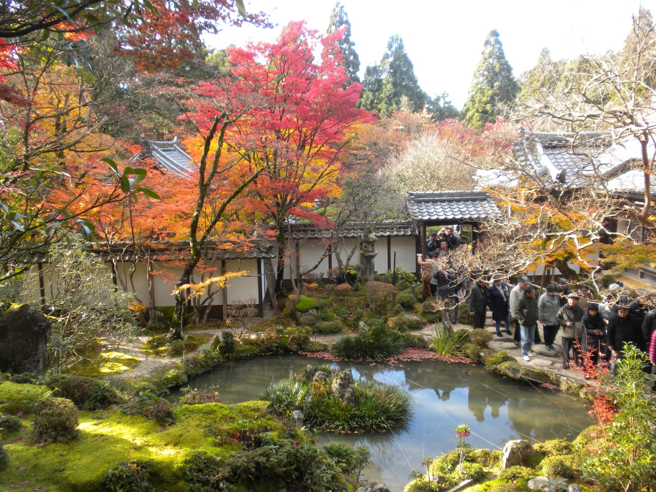 「蓬莱庭」は国指定の名勝庭園で通路が狭いので一列になって巡ります。