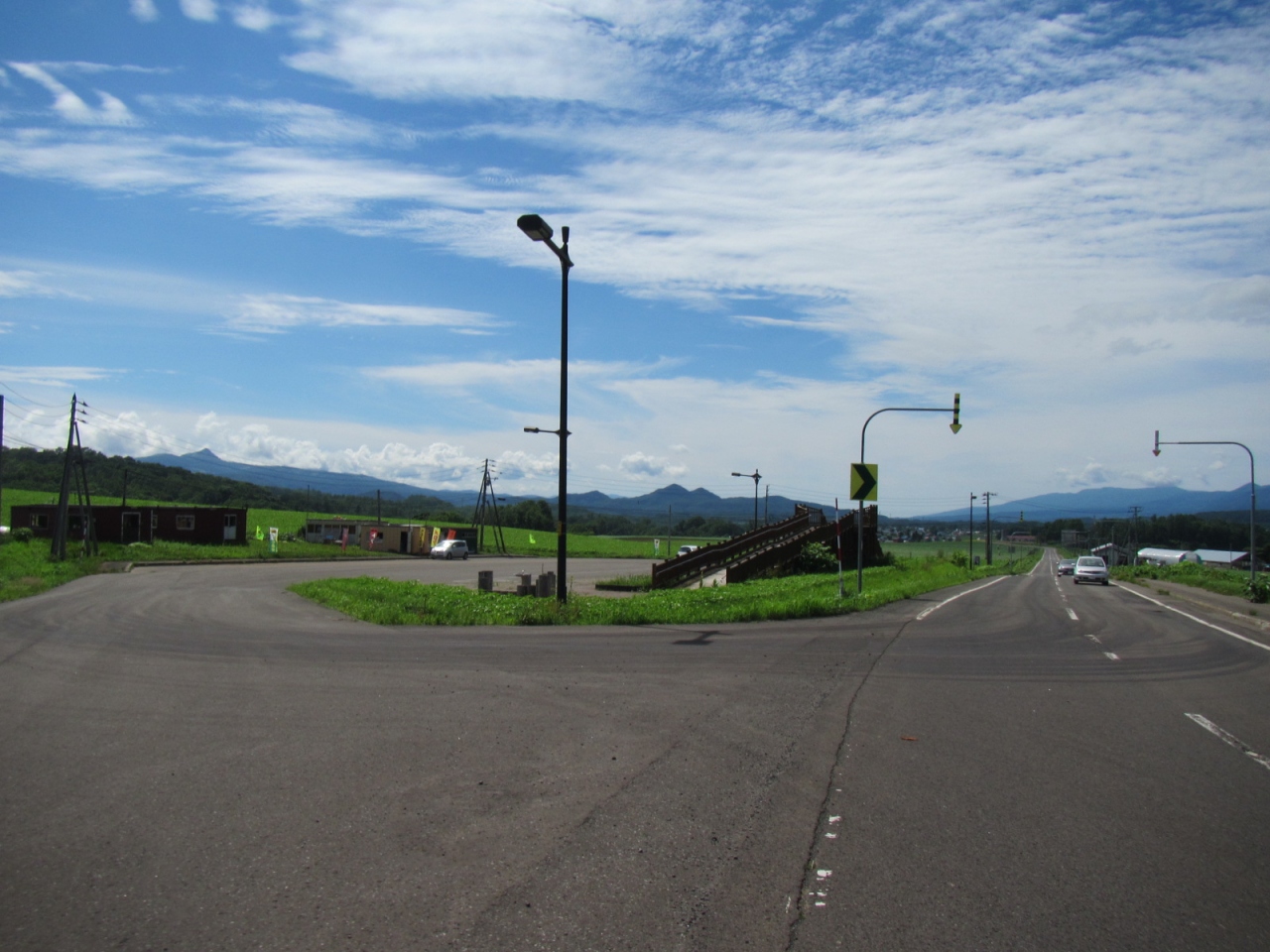 羊蹄山の麓の、緩くうねる丘を進む道路の途上にあります。