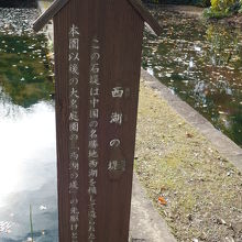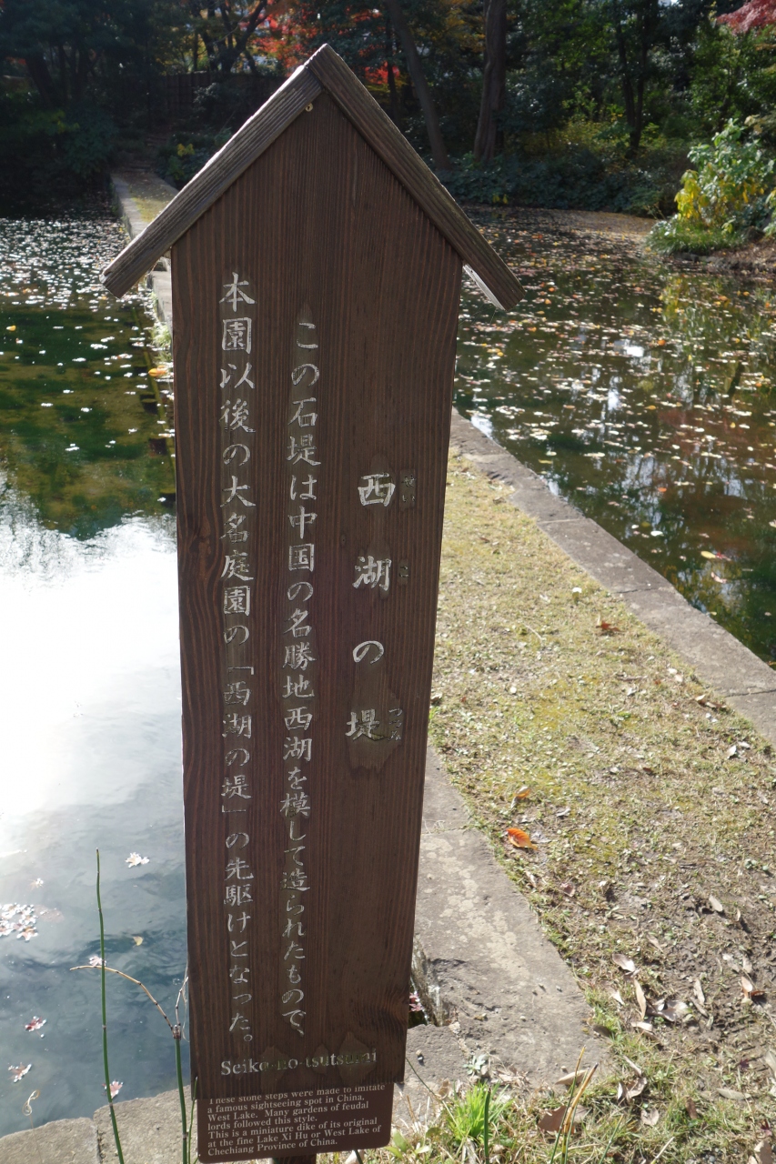 入口のすぐ左手、大堰川、渡月橋の手前に在ります。周囲の橋や山が京都(特に嵐山)を模したとしているのに対し、これはいきなり中国の西湖です。実際のっぺり平らな橋とも言えないようなモノが細長く浮かんでるのか何なのか?不思議です。だって、単に真っ直ぐなんです。それもまた特徴的では有りますが。
