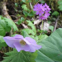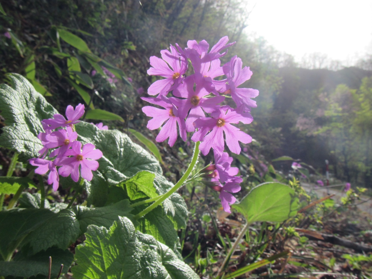 春、5月上旬に訪れたところ、サクラソウやスミレ、シラネアオイ、ニリンソウなどの野花が道沿いに咲き乱れていました。