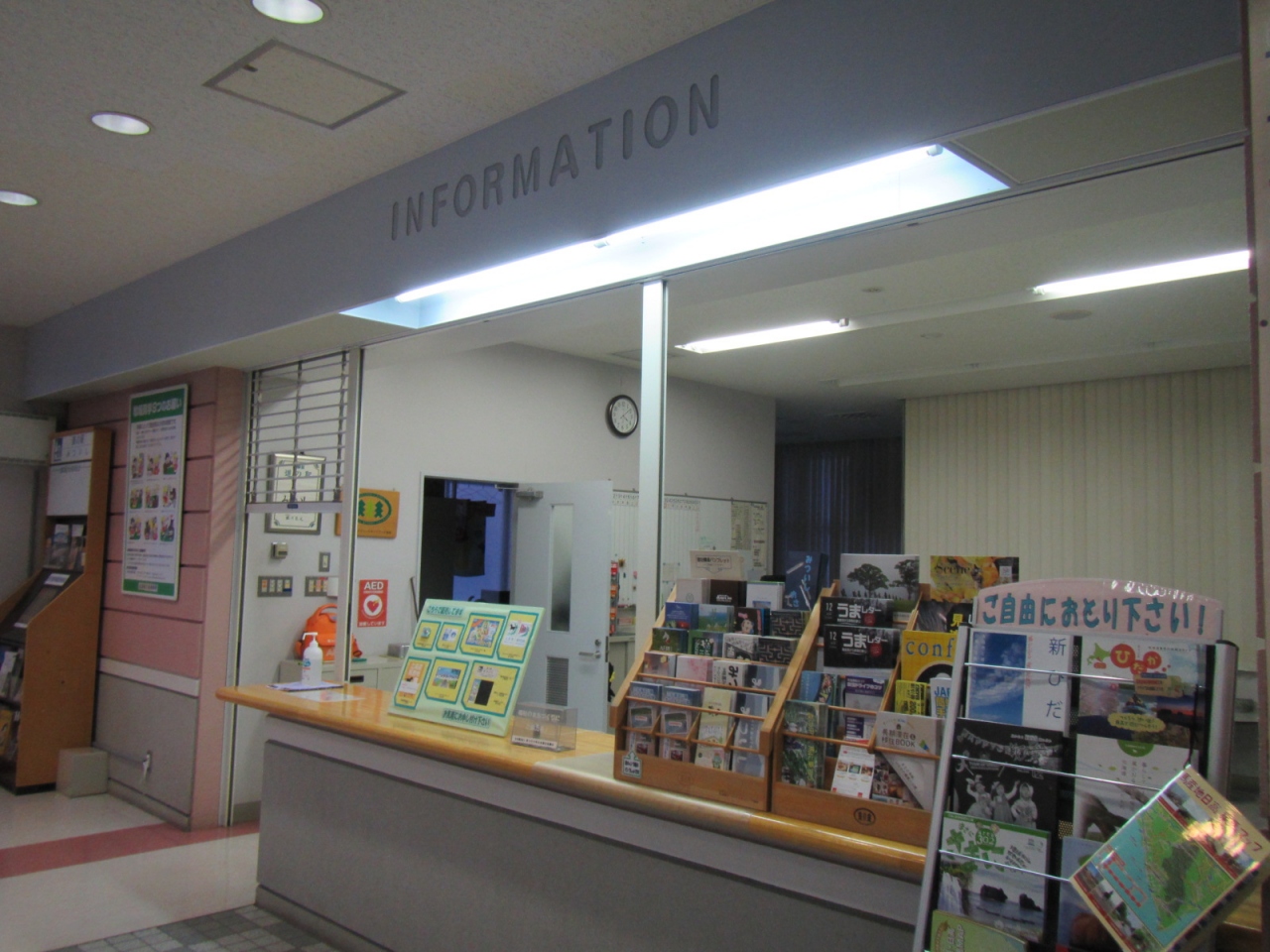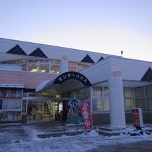 三石のお土産を売る別館のほか、本館にはパンフレットなどもある観光案内所にトイレ、そして2階にネパールカレーなどが食べられるレストランがあります。