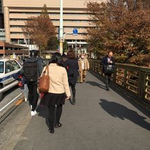 御茶ノ水駅から文京区側に行く橋で、交通量はかなりあります。その割に歩道は細く、信号がなかなか変わらない関係上、歩く人も急いでいるので写真撮影には細心の注意を払う必要があります。橋からみると外堀もよく見えて実に景色がいいです。