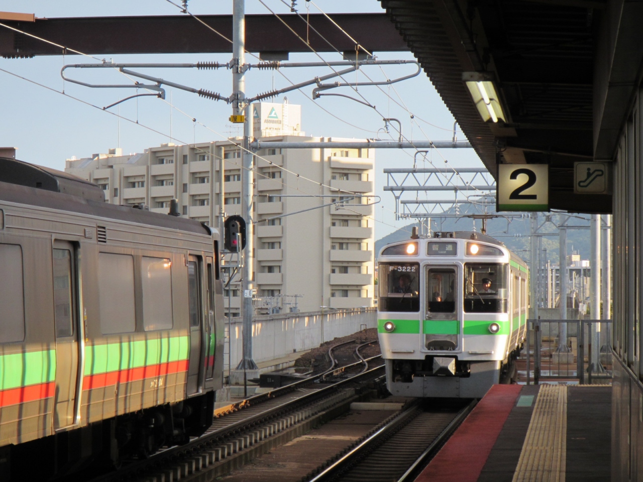 函館本線から離れる際に単線で分かれて、再び八軒駅で複線になるため、単線区間の列車待ち合わせ・八軒駅での列車交換のため、しばし停車する場合があります。