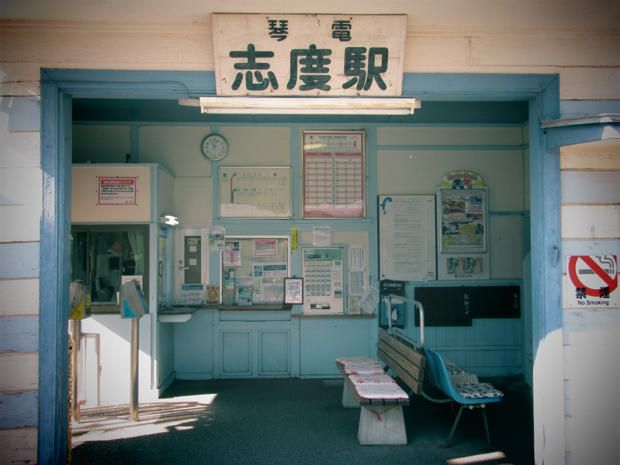 琴電志度駅は昭和の映画に出てきそうな駅舎。