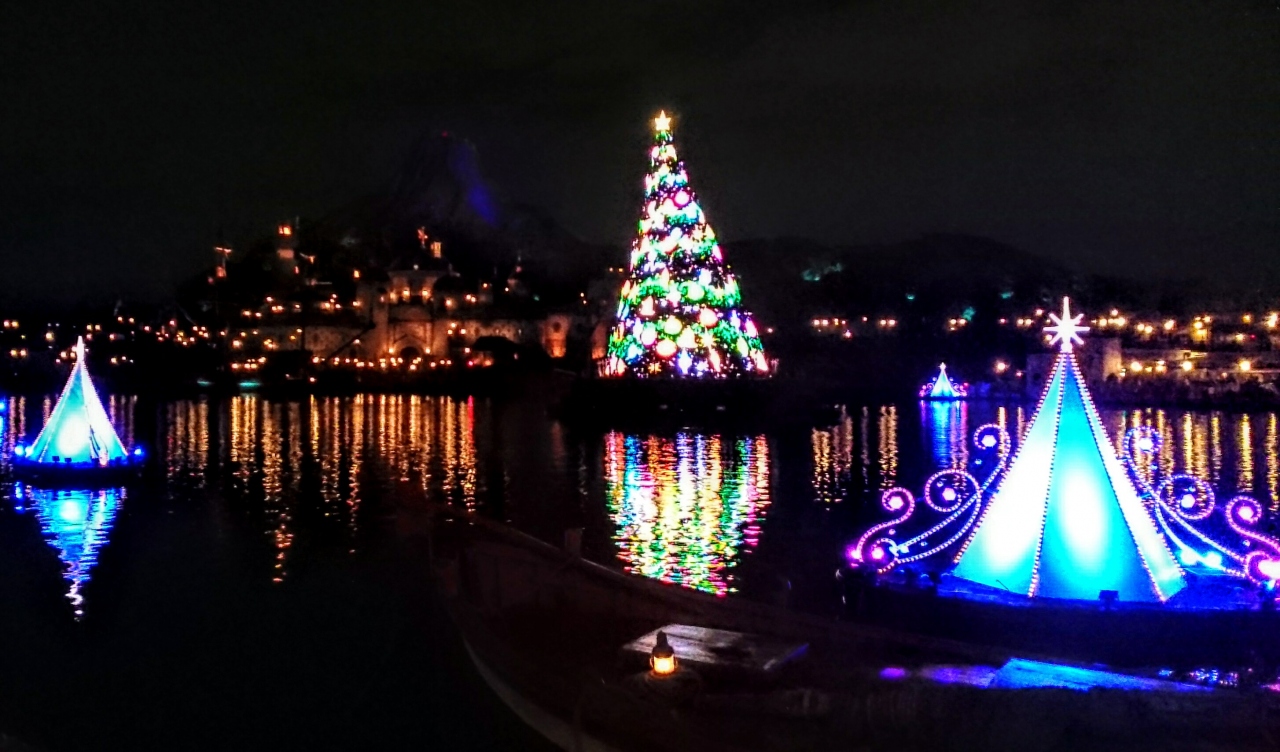 また、夜の「カラー・オブ・クリスマス」のツリーやオブジェは閉園時間まで輝いているので、最後まで幻想的なクリスマス気分を楽しむことができました。